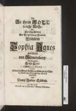 • Titel: Die In ihrem Gott fröliche Kirche : Uber Das selige Ableben Der Wolgebohrnen Fräulein/ Fräulein Sophia Agnes gebohrner von Güntersberg/ Aus Deroselben Leicht-Texte/ (Jesaiä c. LXI, 10.) betrachtet/ Und in der Peters-Kirchen zu Cölln an der Spree bey Volckreicher Versammlung öffentlich fürgestellet